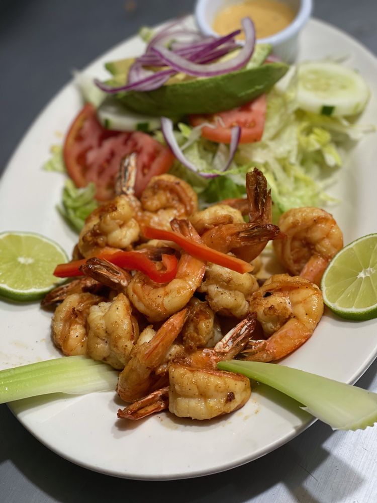 Steam shrimp, garlic, onion, tomato, and the 2 main Peruvian chili peppers aji panca and aji Amarillo. Served with a side of rice.
